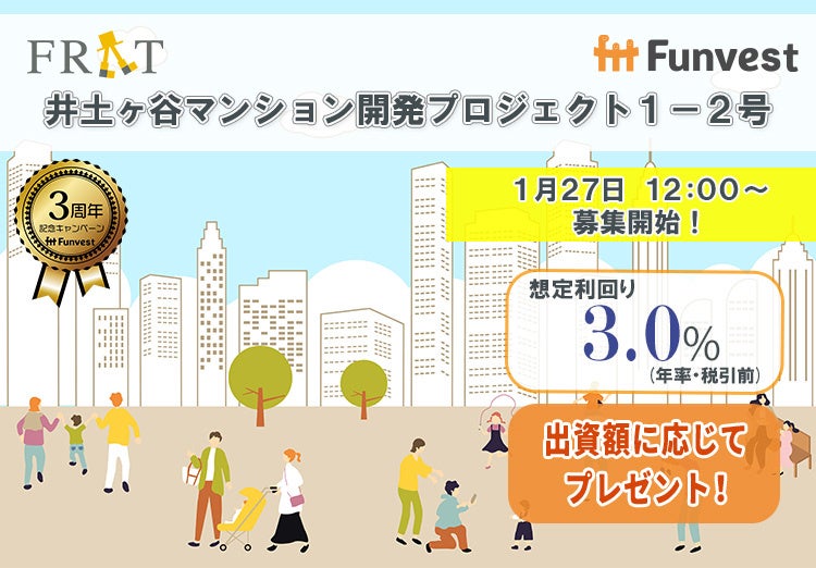 「未来をわかちあう投資」を提供する「Funvest(ファンベスト)」(以下、Funvest)は、「FRAT 井土ヶ谷マンション開発プロジェクト1-2号」(以下、本ファンド)の募集を1/27より開始しますので、お知らせいたします。