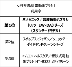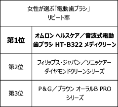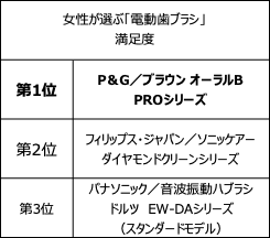 「オーラルケアに配慮」は約9割/女性が選ぶ電動歯ブラシ利用率第1位は「パナソニック 音波振動ハブラシ ドルツ EW-DAシリーズ」、満足度第1位は「ブラウン オーラルB PROシリーズ」