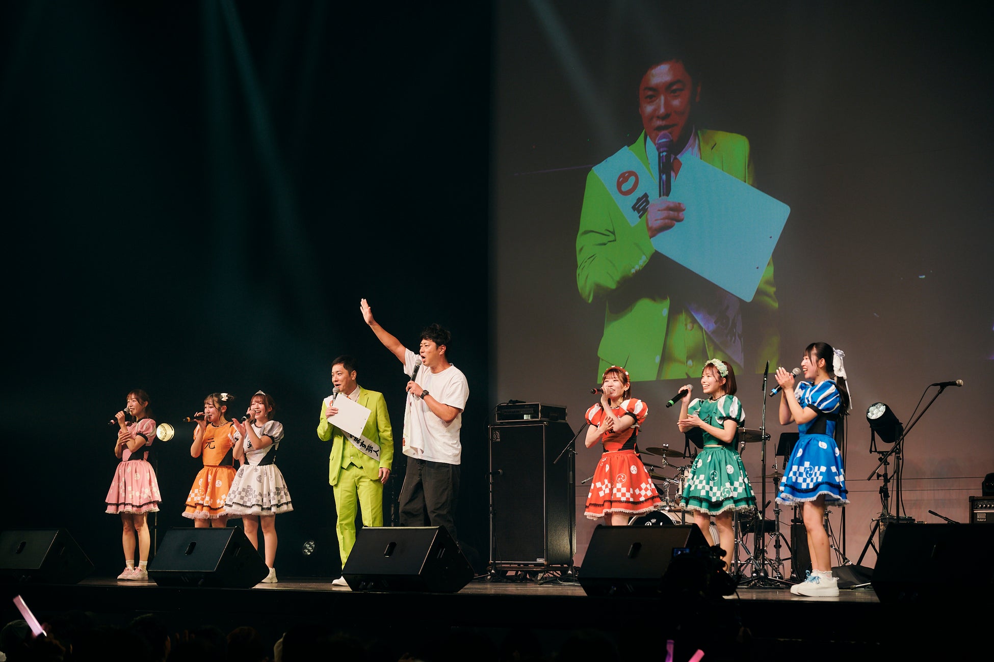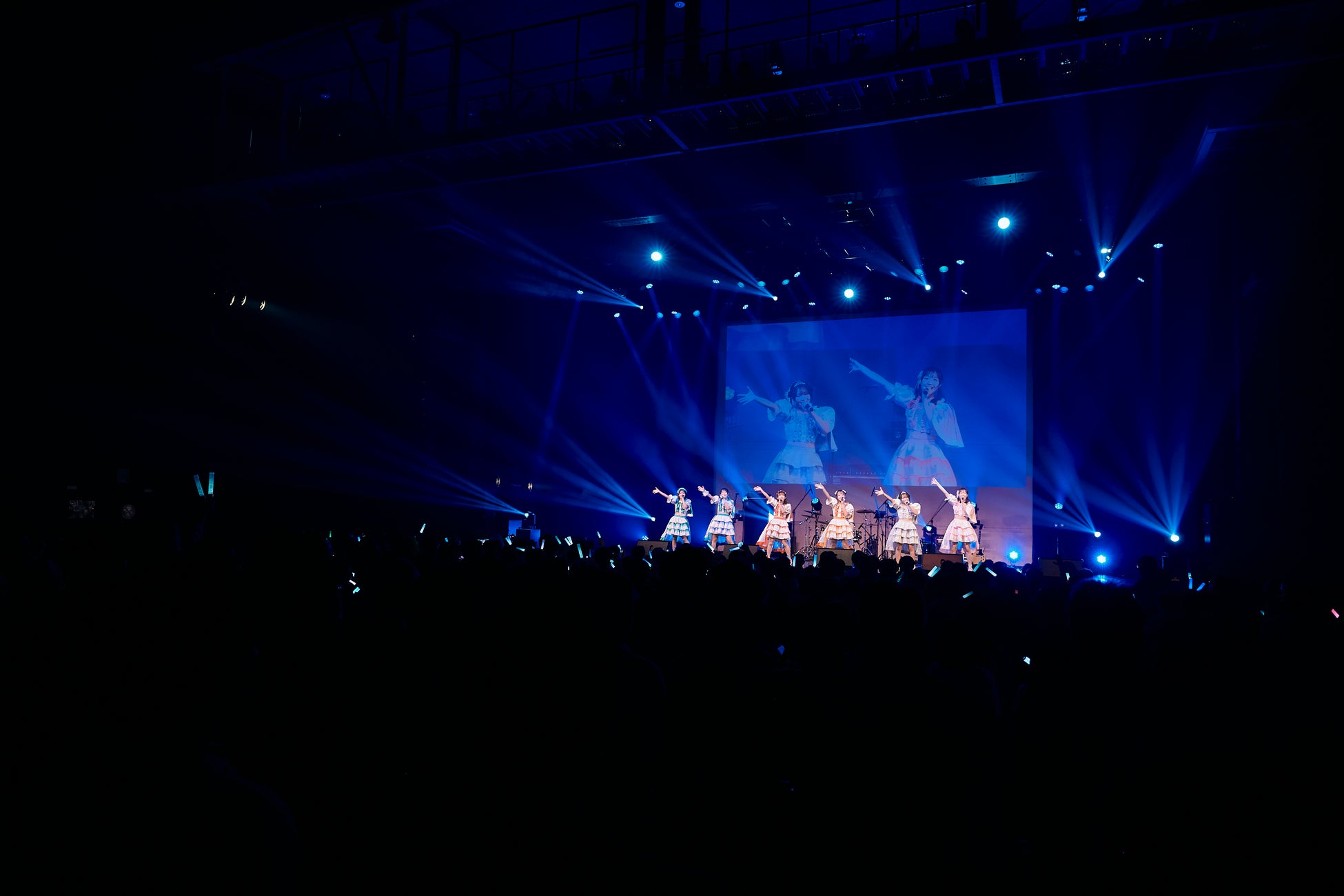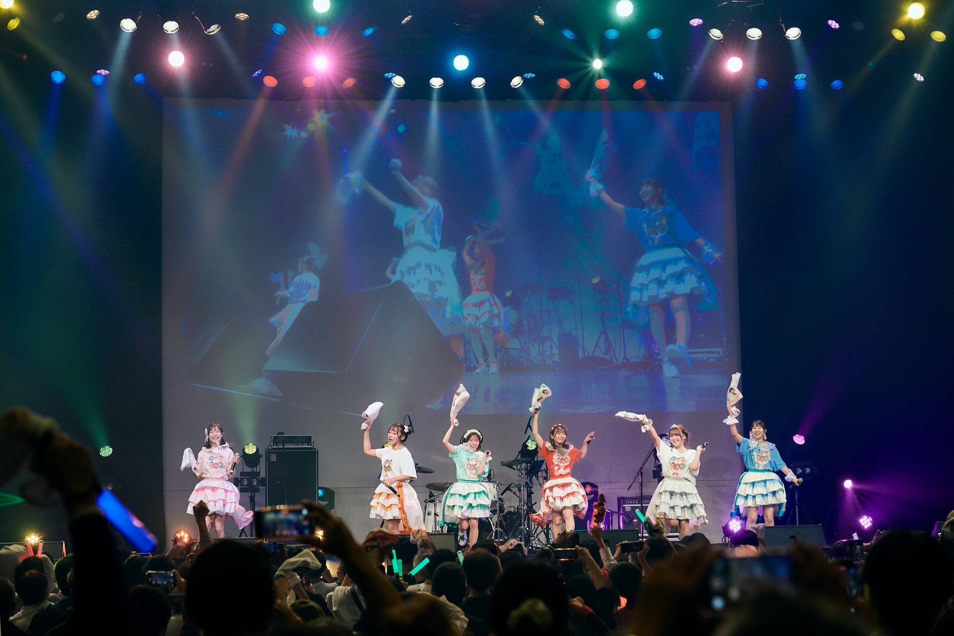 宮城・福島を結ぶ阿武隈急行線をテーマにした『あぶきゅーに乗って』の披露時にはメンバーの小日向と福島が車掌に扮して曲をスタートさせるなど個性豊かな演出とともにお届け。さらに、ファンの応援によって制作された東北お祭り合戦のMVの初公開や、本編ラストには見どころのひとつであったバンド生演奏でのステージも。バンド編成で披露されたのは『宮城日和』、『岩手讃歌』、『秋田rock 'n' roll』の3曲で、迫力あるバンドサウンドにのせたパフォーマンスは新鮮味があり新たな一面を垣間見せた。