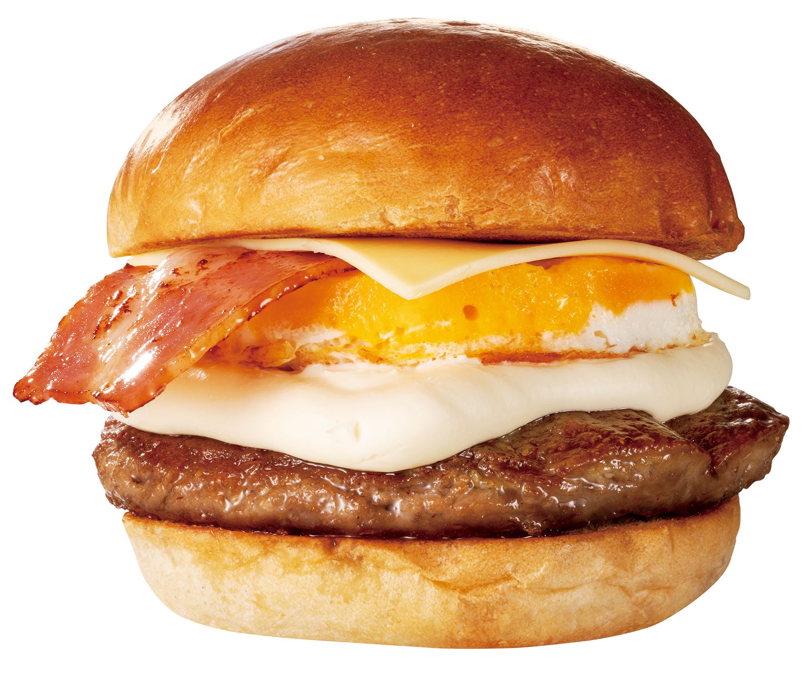 ファーストキッチンの看板商品で大人気のベーコンエッグバーガーと、春にぴったりな爽やかなクリームチーズとのコラボレーション!クリームチーズを存分にお楽しみいただけるよう、スライスチーズとクリームチーズソースの2種類を使用。特製和だしが香るパティと醤油を加えたバンズに、お店で丁寧に焼き上げたたまごとベーコンが織りなすハーモニーはまさに逸品。和の旨味とクリームチーズの味わいが絶妙にマッチした春限定バーガーです。