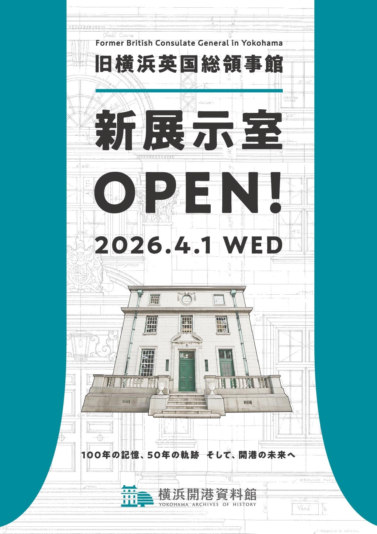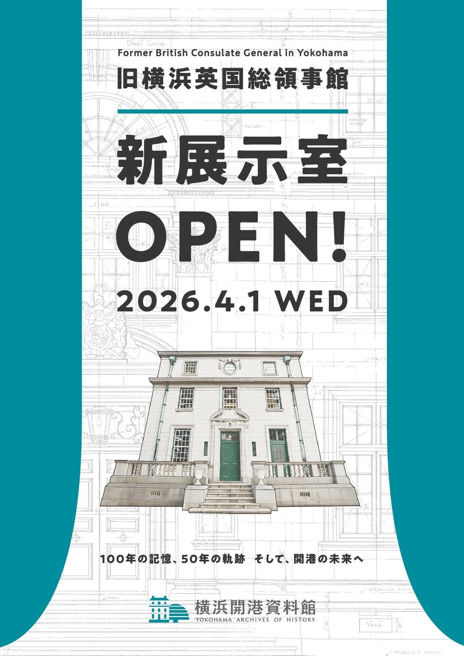 横浜開港資料館は、令和3年度から実施してきた整備工事の完了を受け、令和8年4月1日(水)より「旧横浜英国総領事館」(横浜開港資料館旧館)の新展示室を公開します。今回の整備工事により新展示室も含めて、旧館へのバリアフリー対応が完了しました。
