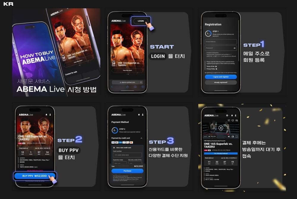 また、「ABEMA Live」では高いユーザビリティを追求し、最短で3ステップの入力で視聴チケット購入が完了するユニバーサルデザインを取り入れるほか、展開する国の各言語(※4)に対応したサービスのご案内や、カスタマーサポート体制を構築するなど、言語や文化を超え、老若男女誰もが手軽にアジアのエンターテインメントを楽しめるメディアを目指してまいります。