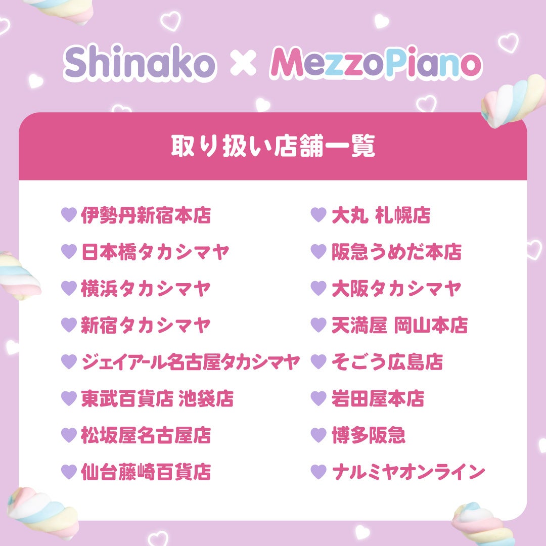 話題の大人気クリエイターの「しなこちゃん」とmezzo pianoのスペシャルコラボが実現!とびきり可愛いアイテムが2025年2月1日(土)より一部店舗にて発売開始!