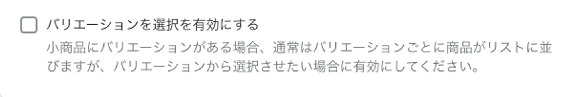 「バリエーション選択を有効とする」チェック欄を追加