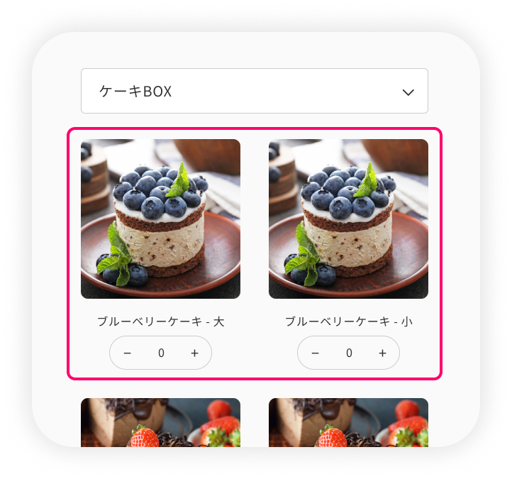 チェックを入れない場合:バリエーションごとに表示、それぞれ個数変更が可能
