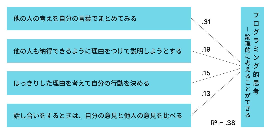 続いて、プログラミング学習において重要とされる「論理的に考えてプログラムを組み立てる力」に、どのような要因が関係しているかを分析しました。(※4)(※5)