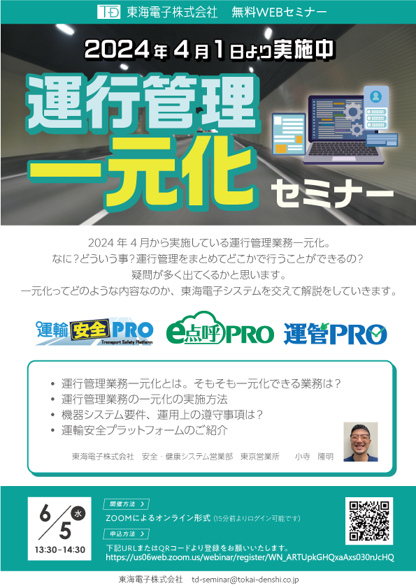 “2024年4月1日より実施中” 運行管理一元化セミナー6月5日(水)