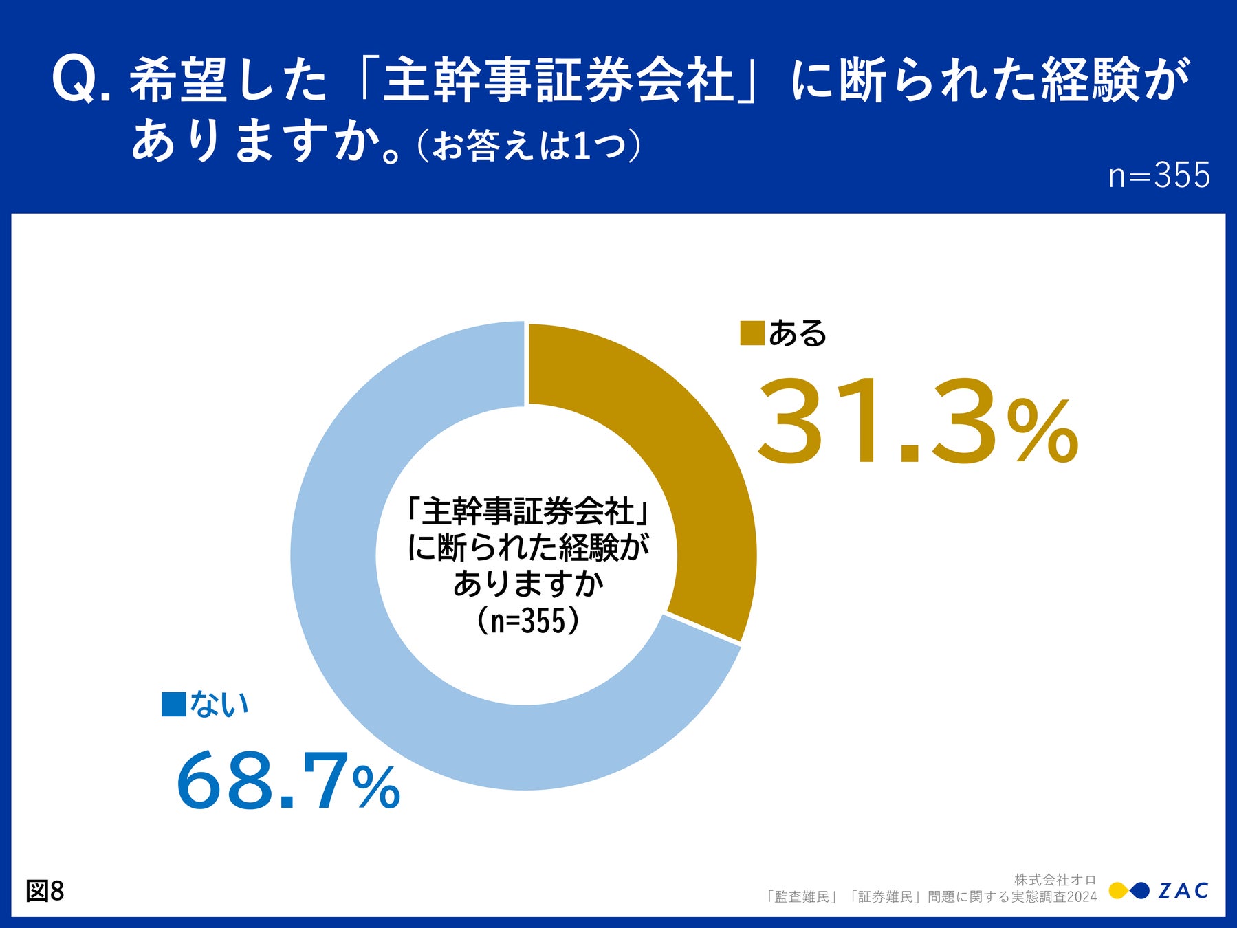 希望した「主幹事証券会社」に断られた割合 31.3%