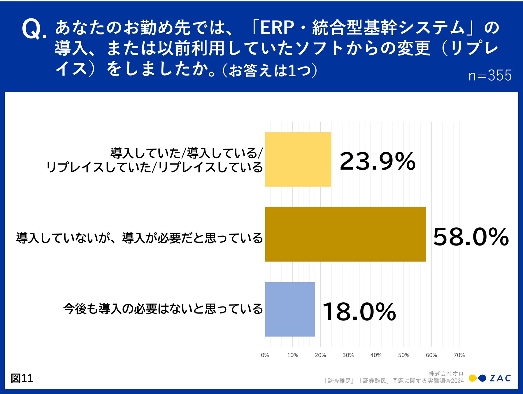 本調査でも、ERP・統合型基幹システムの導入がIPO準備に効果的であると回答した企業は72.9%に上っており、監査難民にならないための対策としてERP導入は有用な手段の一つと言えそうです。