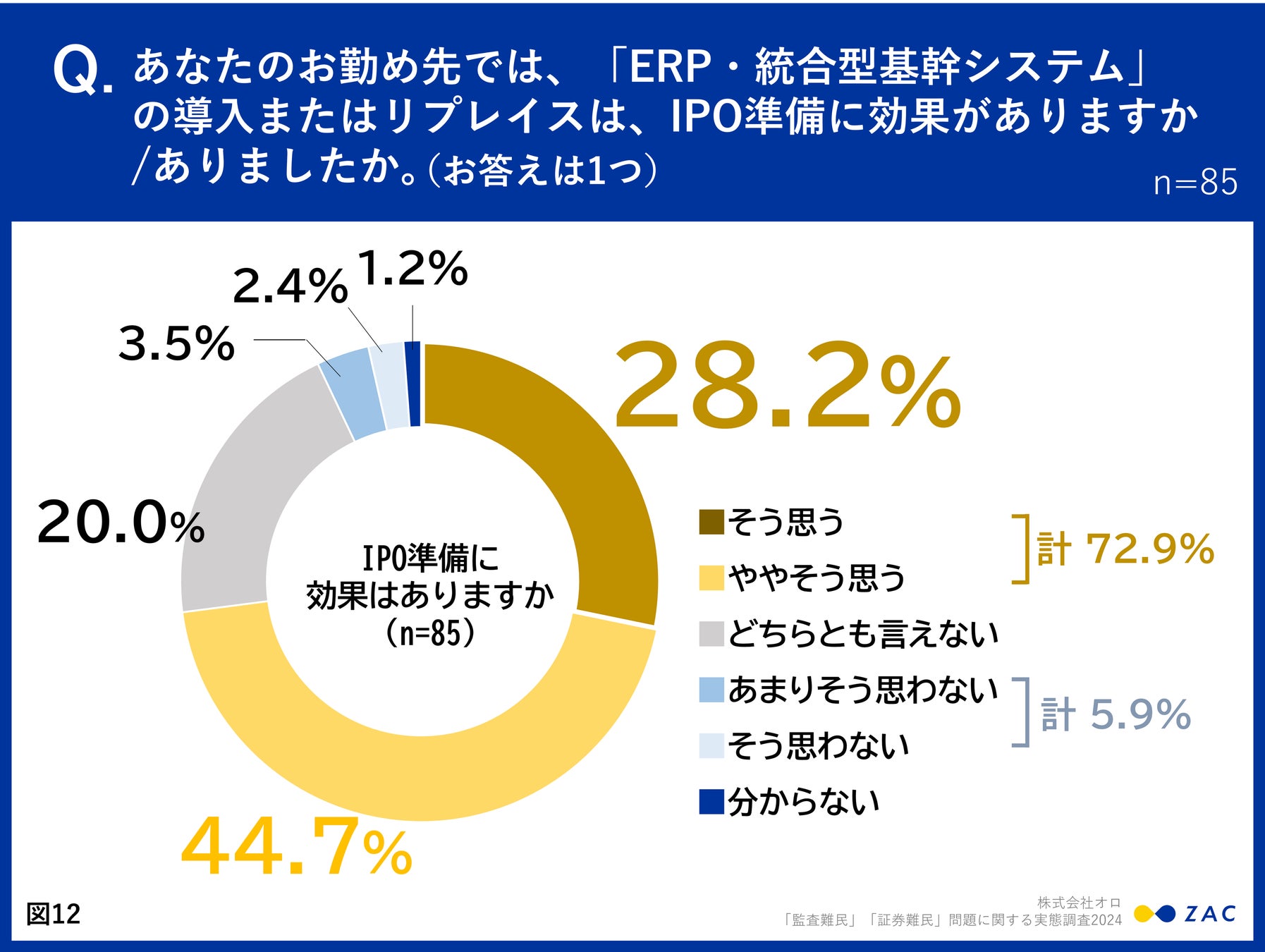 ■「ERP・統合型基幹システム」の導入またはリプレイスは、IPO準備に『効果があった』計72.9%