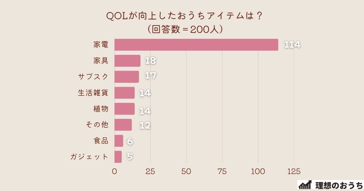 - 【総括】今回のアンケートでQOLが向上したおうちアイテムは?1位は『家電』でした