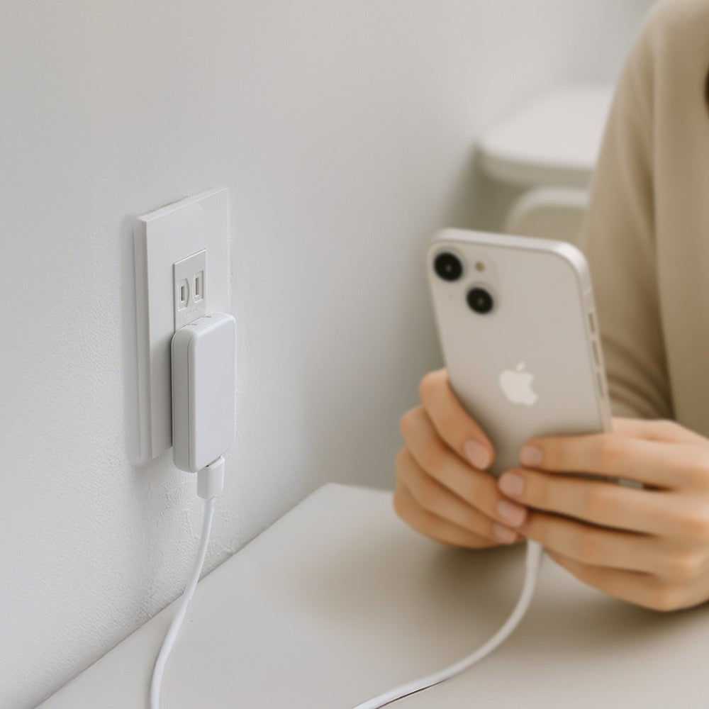 本製品はオウルテック史上、最薄・最軽量クラスのAC充電器です。壁面コンセントなどの狭い場所はもちろん、ポーチに入れても邪魔にならないサイズで、旅行先での使用にもおすすめです。