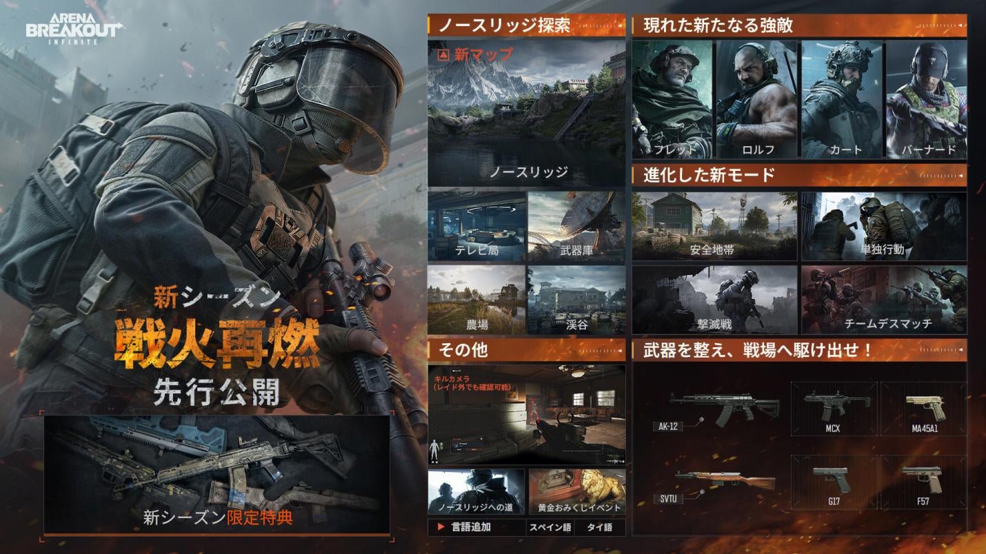 Tencent Gamesの開発スタジオMoreFun Studios Groupは本日、基本プレイ無料の『Arena Breakout:Infinite(アリーナブレイクアウト:インフィニティ)』(以下、アリブレPC)において、新シーズン「戦火再燃」を4月29日(火)より公式サイトで開始すると発表しました。