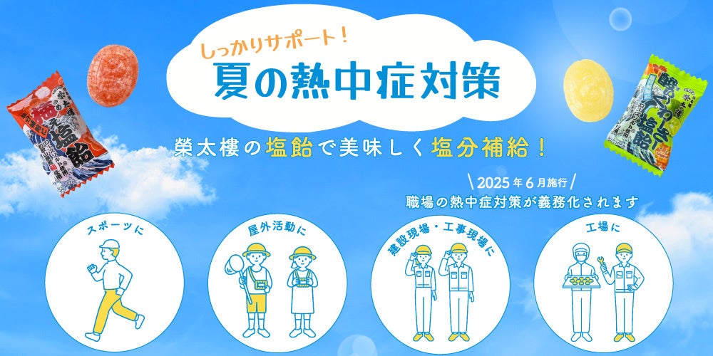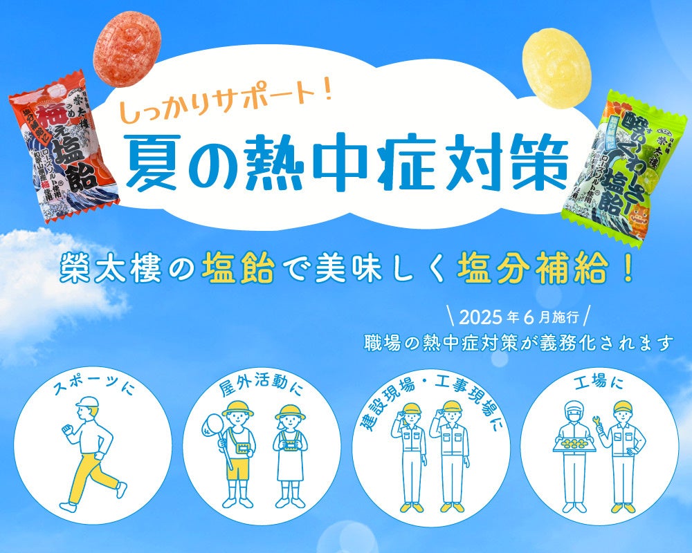 【夏本番前に備えを!】塩分補給で熱中症予防をサポートする「梅ぇ塩飴 1kg」「酸ぃ~くわーさー塩飴 1kg」6月2日より榮太樓公式オンラインストアでポイント10倍キャンペーン実施