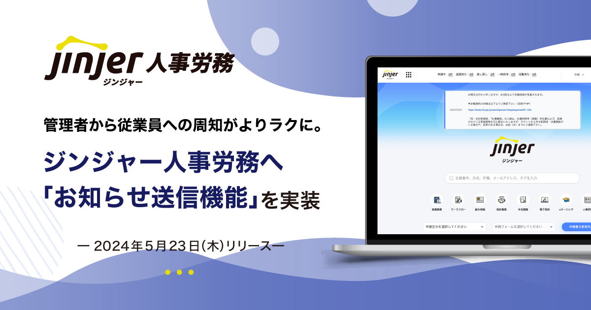 管理者から従業員への周知がよりラクに。ジンジャー人事労務で「お知らせ送信機能」を実装