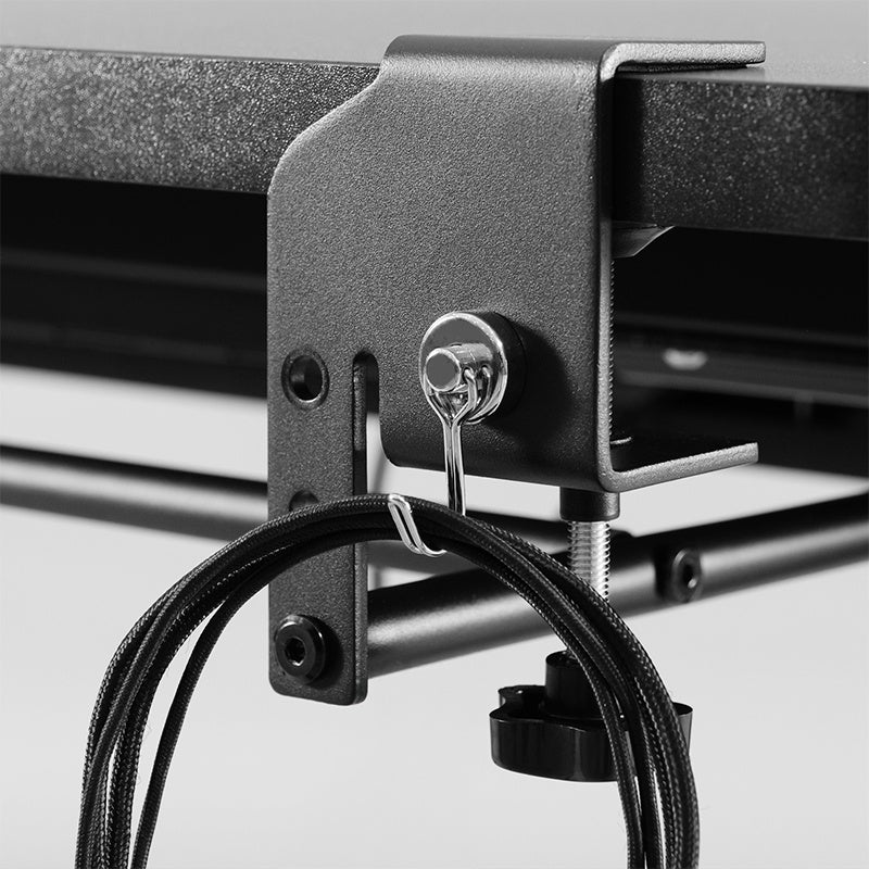 強靭なスチール製クランプにはマグネットを取付可能。ケーブルマネジメントやデコレーションに。