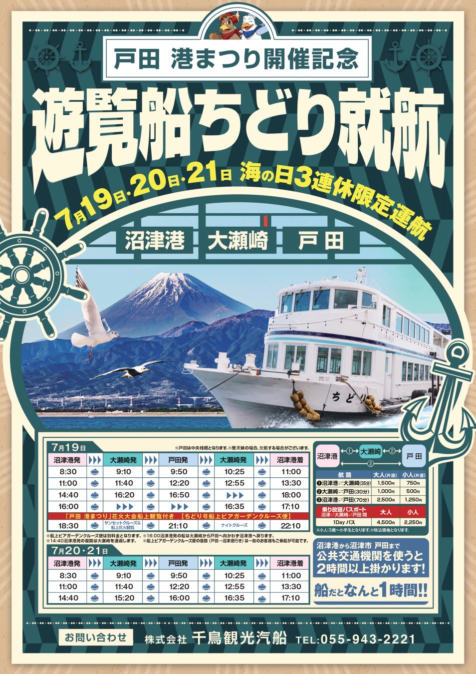 戸田 港まつりの開催を記念した 沼津港〜大瀬崎〜戸田(へだ)特別便 「2025年 海の日3連休」運航決定!【千鳥観光汽船】