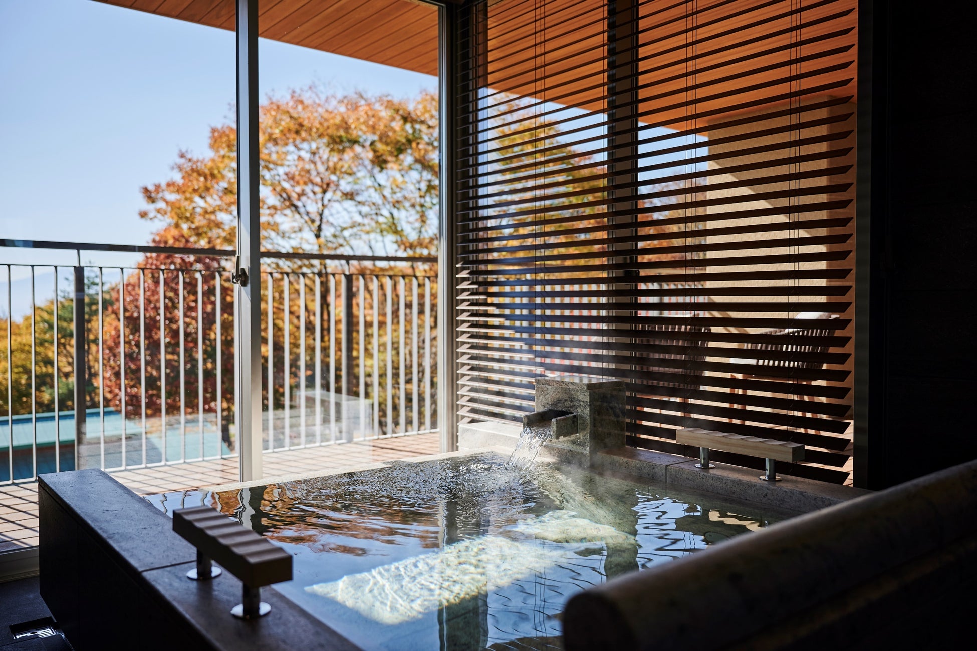 「THE HIRAMATSU 軽井沢 御代田」は、浅間山南麓の豊かな森に佇む“森のグラン・オーベルジュ”。6万㎡を超える広大な敷地に、本館28室とヴィラ9棟を配し、すべての客室にテラスと半露天風呂を備えています。森に開かれた空間で自然の息吹を感じながら過ごす滞在は、ここでの美食体験をより深いものに引き立てます。その唯一無二の滞在価値は、2025年ミシュランガイド ホテルセレクションにおいても「2ミシュランキー」に評価されました。滞在そのものがひとつのフルコースとなる、ここでしか味わえない美食と時間をおたのしみください。