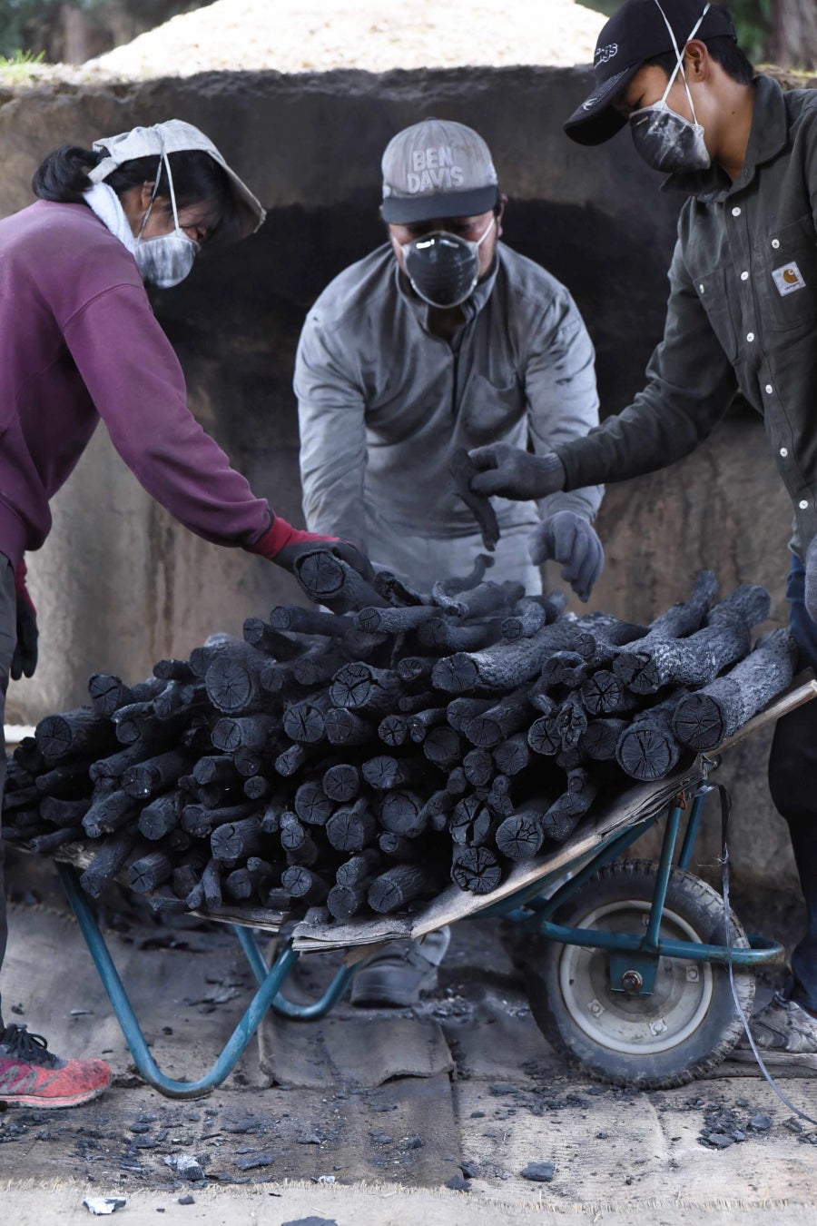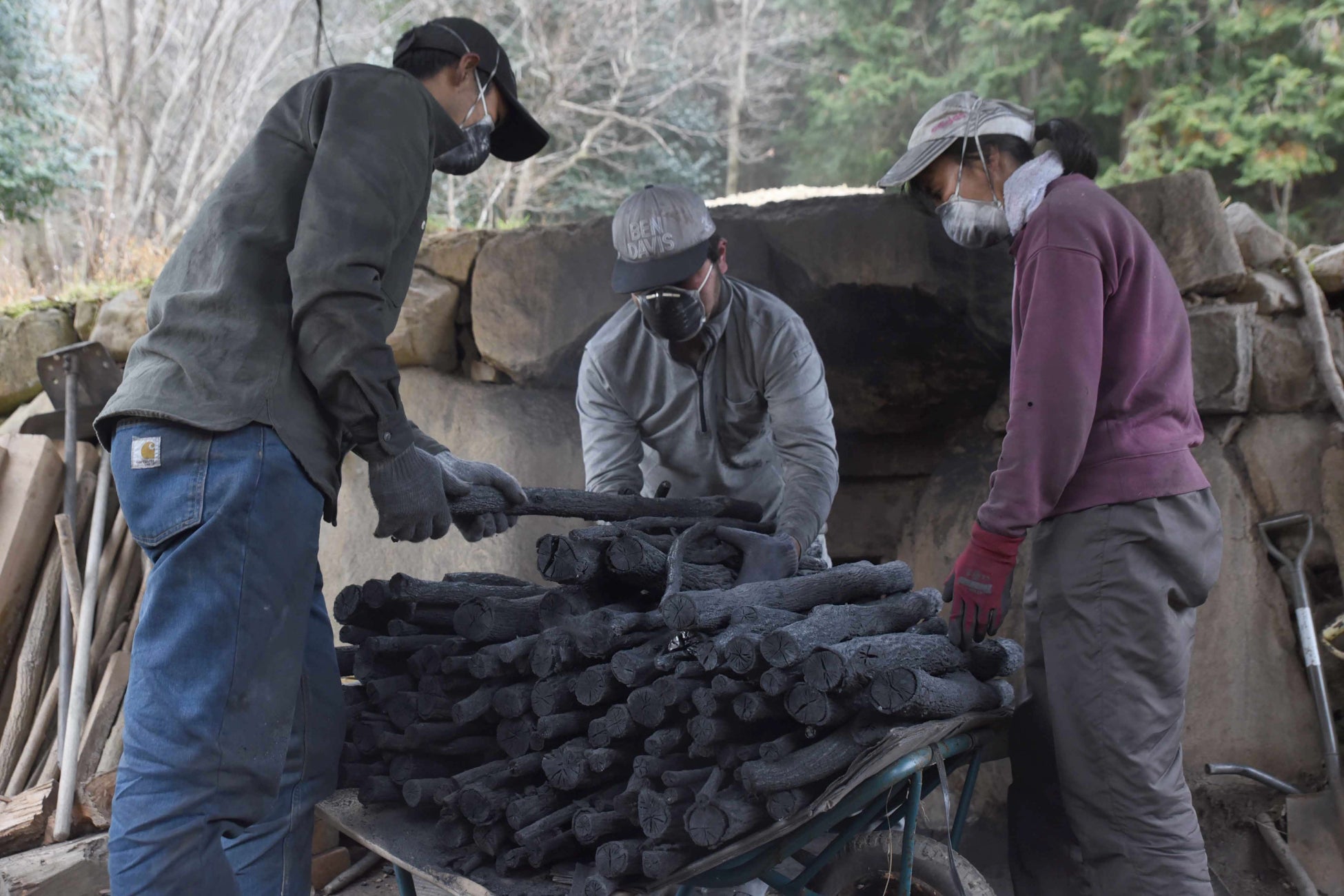 今回窯入れした原木は約4トン。1回に約750キログラムの炭ができる。炭焼きのサイクルは、今年の5月中旬頃まで約15回程度続けられる。