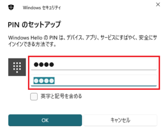 Step5:PINを入力し「OK」をクリックしてPINの設定は完了です。