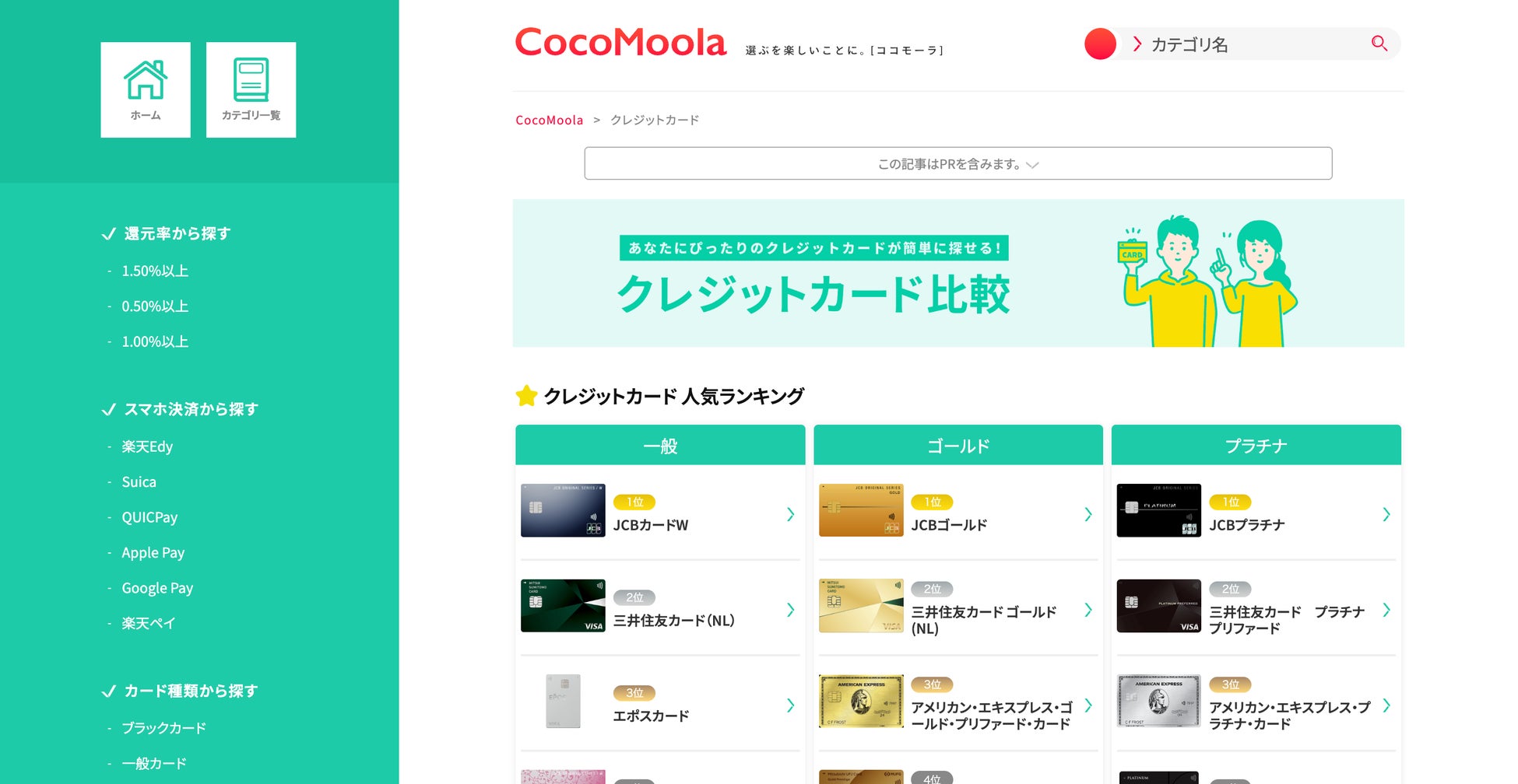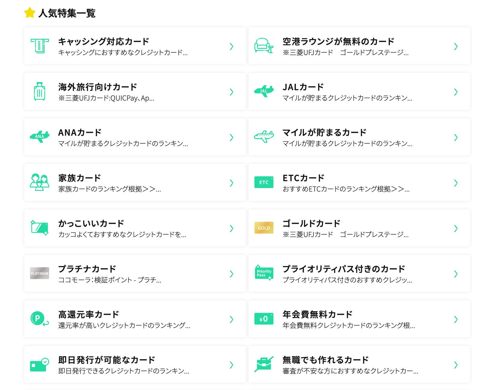 クレジットカードカテゴリーのトップページのデザインをリニューアルしました。