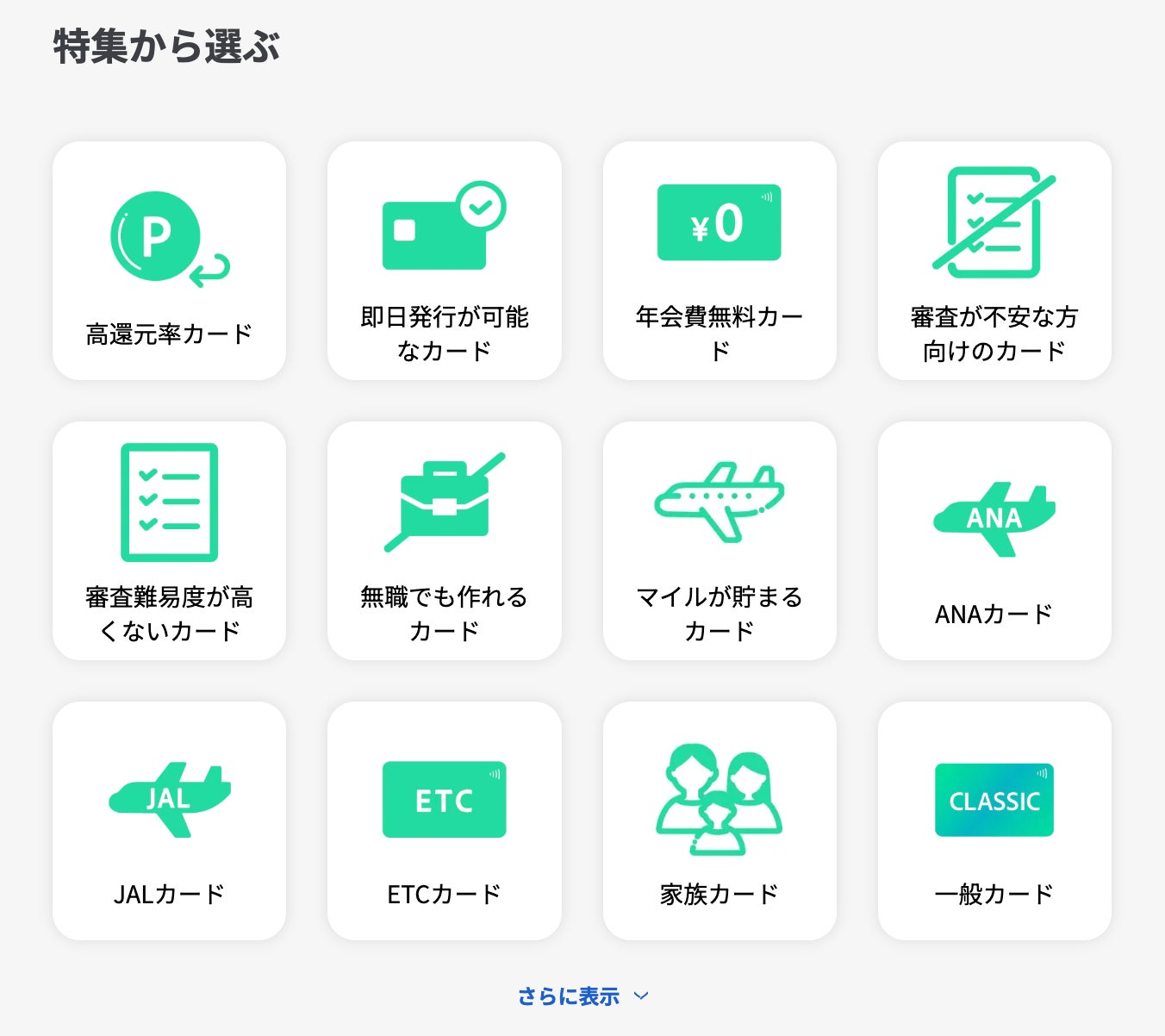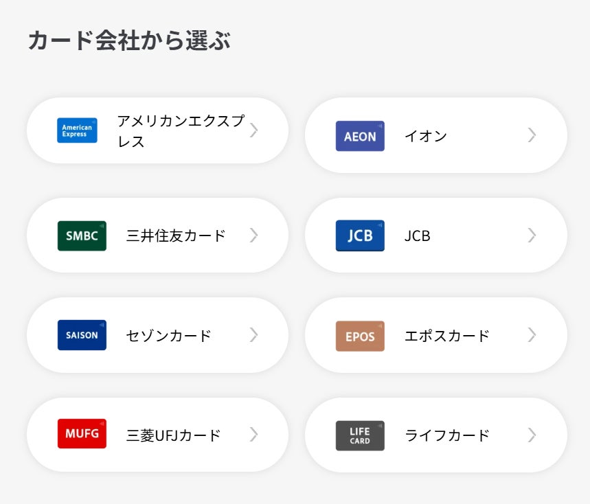 また「カード会社から選ぶ」という欄を新設し、各カード会社が発行するクレジットカードをまとめて確認することができるようになりました。