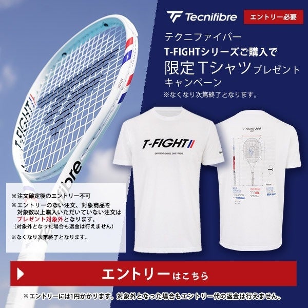 ■T-FIGHT 2025シリーズ 対象テニスラケット購入でTシャツプレゼント、
