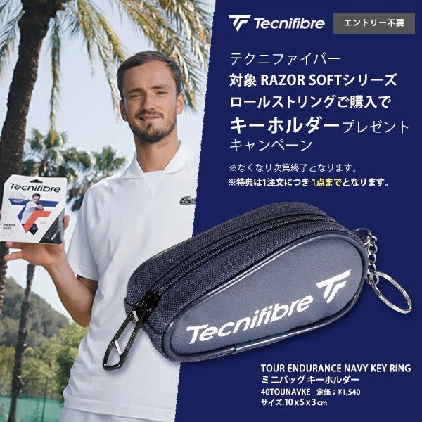 キャンペーン詳細:テクニファイバー RAZOR SOFTシリーズ ロールガット購入でミニバッグキーホルダープレゼント