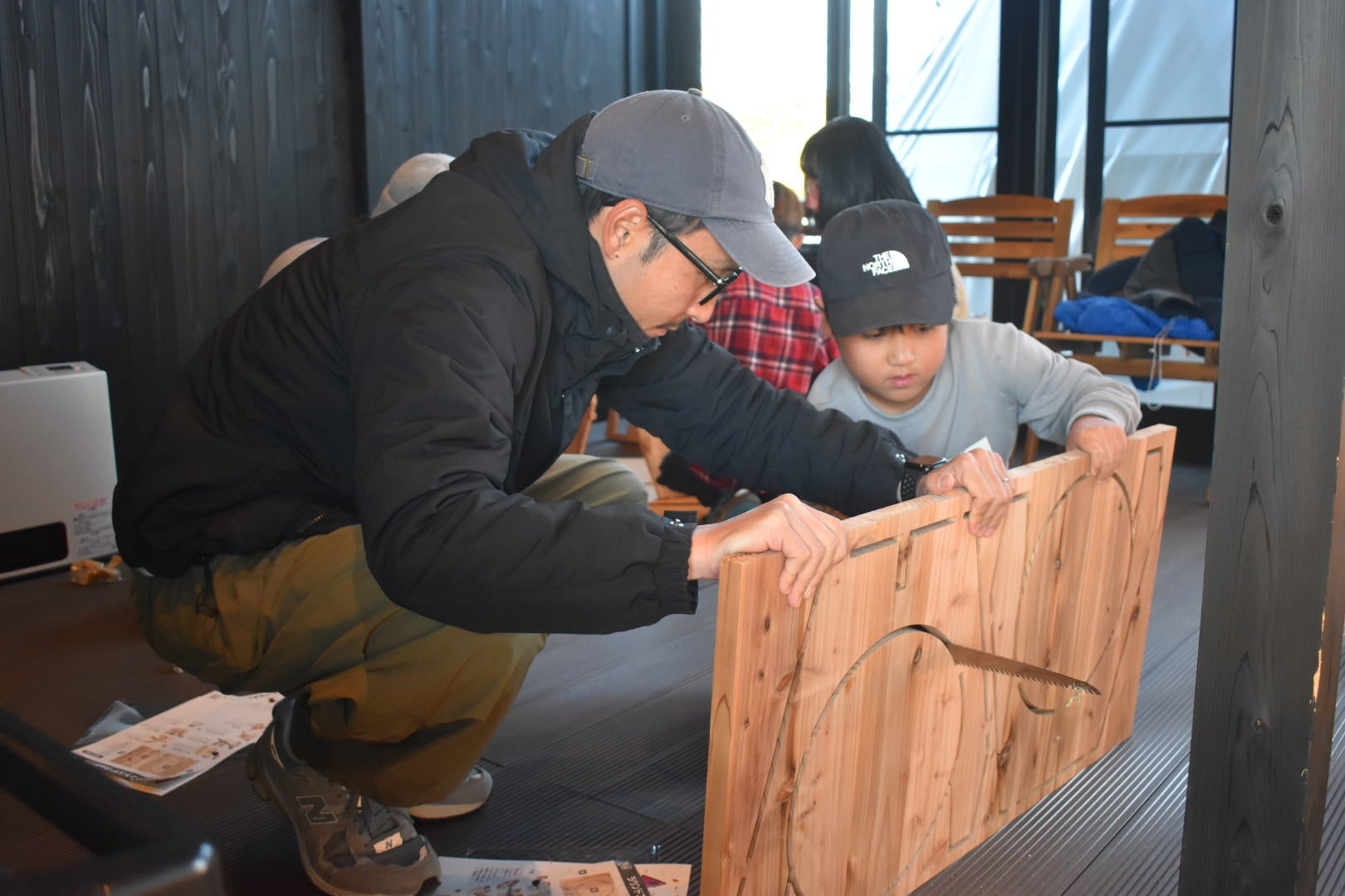 のこぎりでの切断やビス止めなど、親子で力を合わせて取り組む姿が印象的でした。