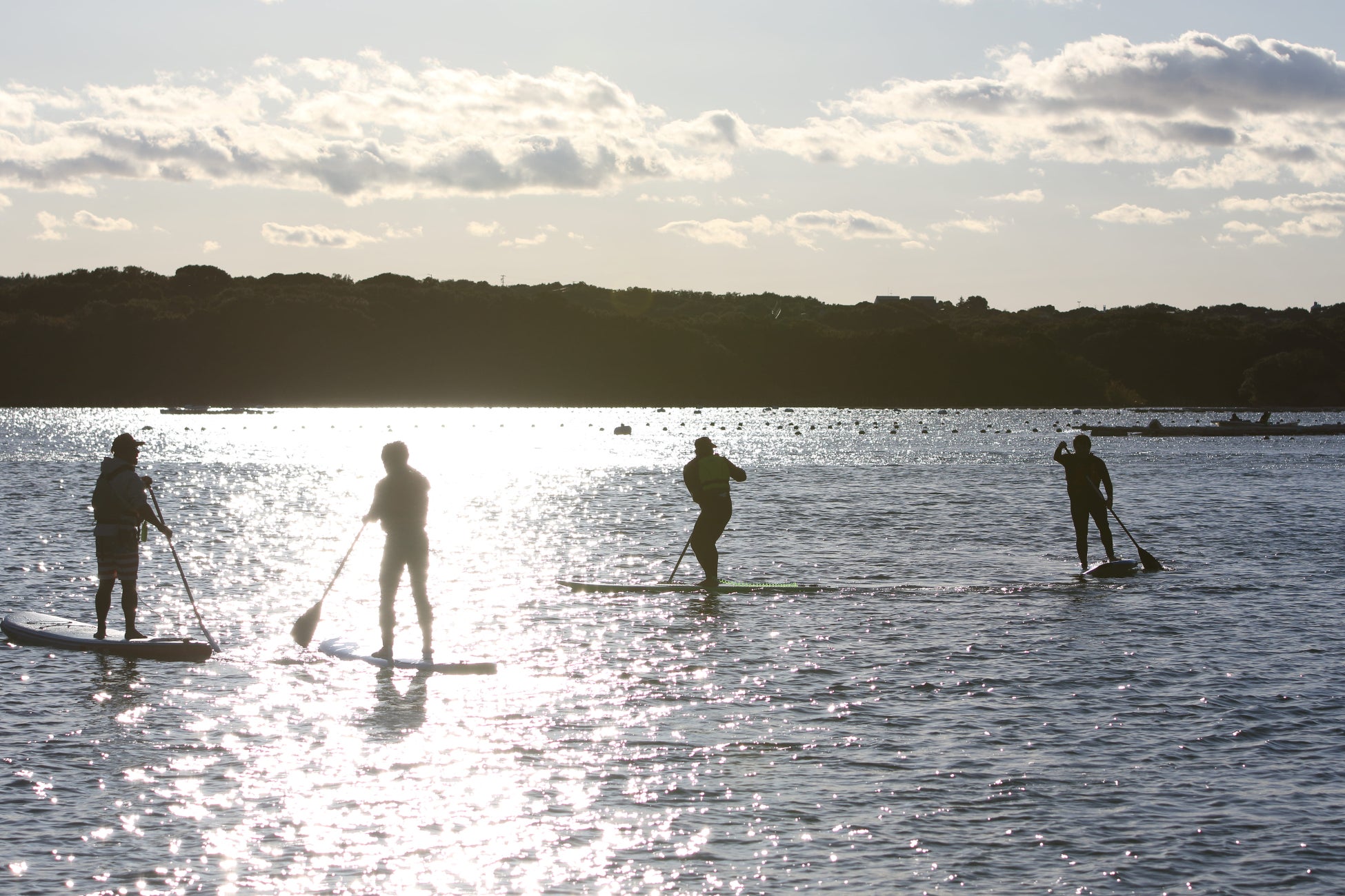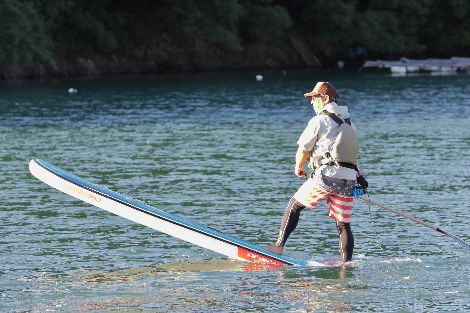 京都からインストラクターを招き、ウェットスーツを着用して冬のSUP体験を行いました。初めてSUPをする方がほとんどの中、穏やかな英虞湾の海と自然を楽しむ様子が印象的でした。
