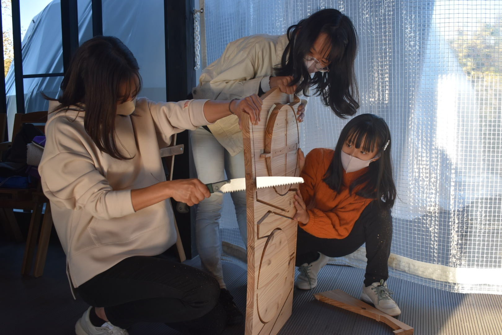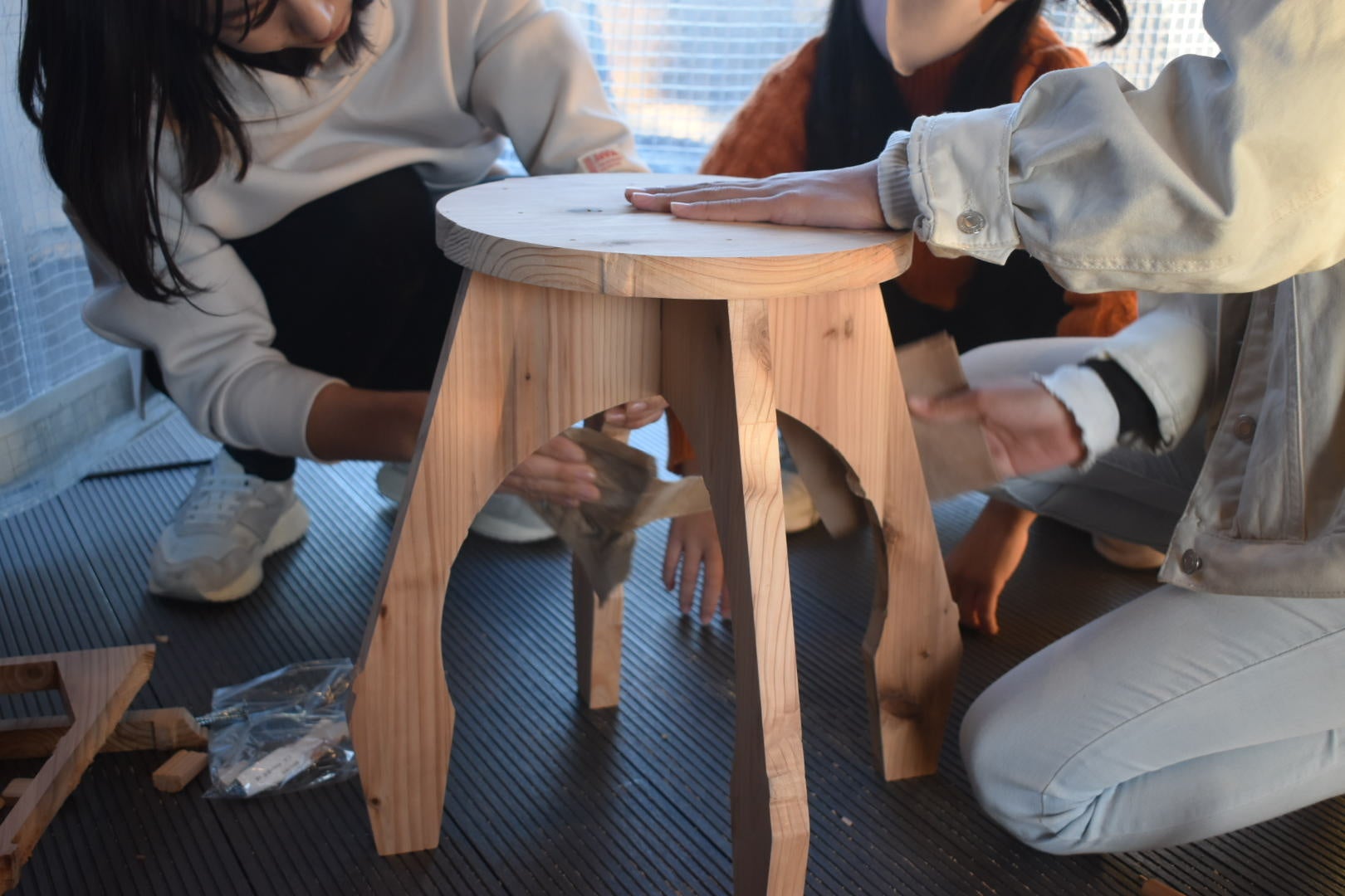 つくる楽しさを味わってもらいながら、自然への関心に繋げることを目指し、国産の無垢材を使った椅子づくり体験を行いました。