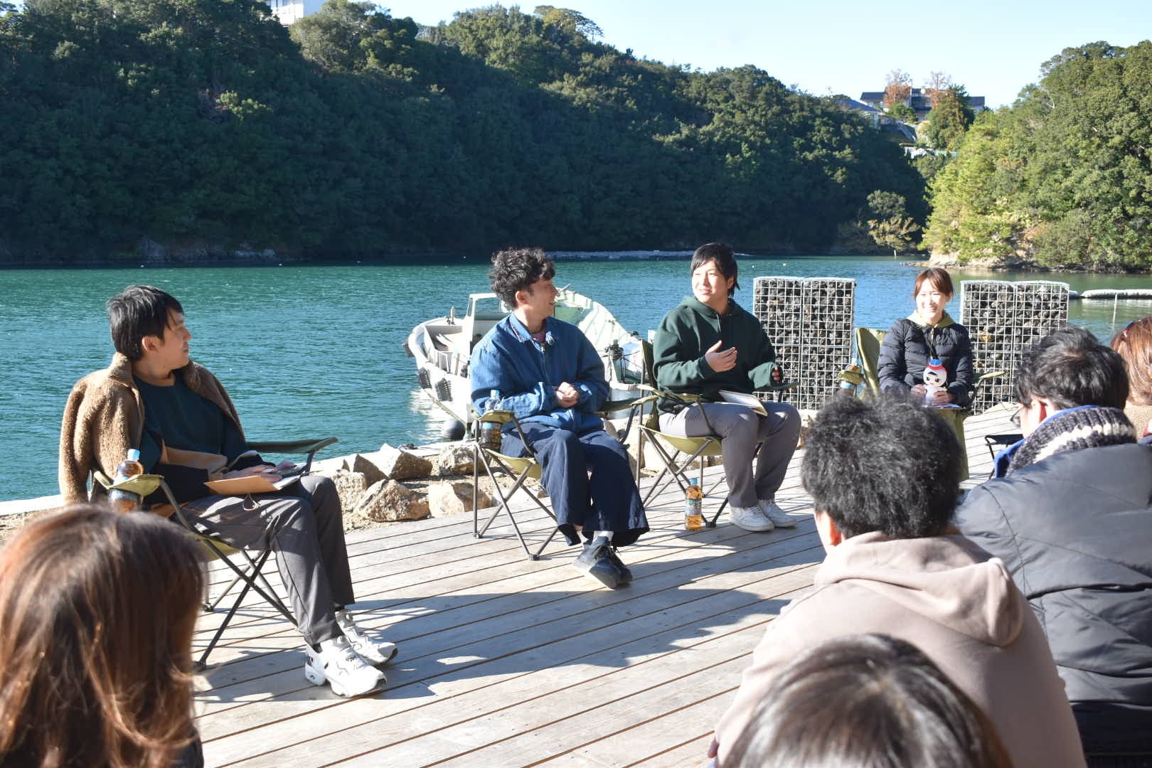 志摩市議会議員の山川楠人氏をゲストに迎え、「地方創生」をテーマにしたクロストークを行いました。美しい英虞湾(あごわん)を背景に、「志摩市の魅力や課題・これから取り組んでいきたいこと」などについて、会場の参加者を交えながらトークを繰り広げました。