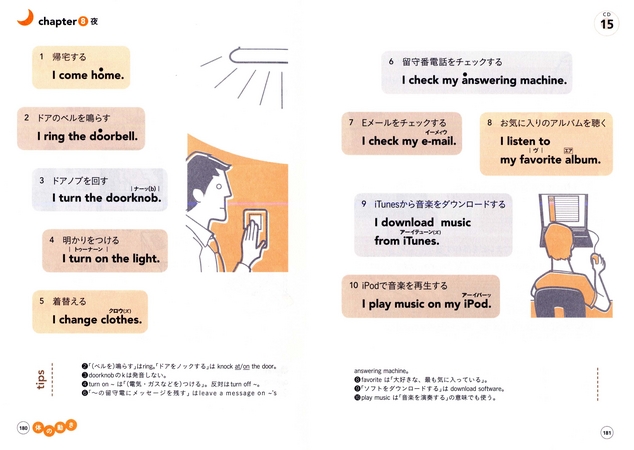 ●朝起きてから夜寝るまで、一日の一般的な生活シーンを8章に分けています。