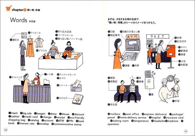 ●一日の一般的な生活を「朝」から「夜」までのいくつかのシーンに分類(本書では8つ)。