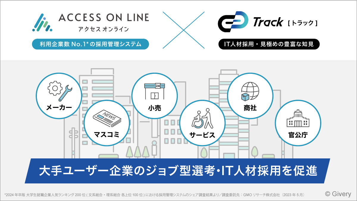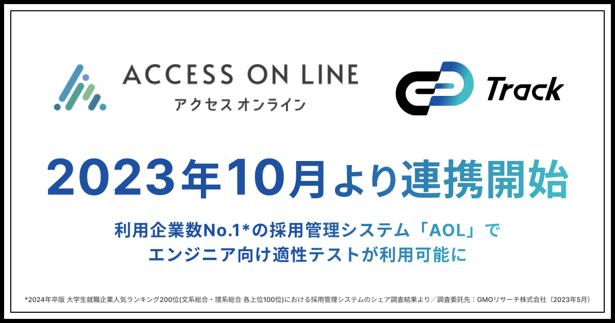 業界最大手の採用管理システムAOLとIT人材・エンジニアの採用に特化した適性テストが実施できるTrack Testの連携により、企業のジョブ型選考やIT人材採用をスムーズに実現します。