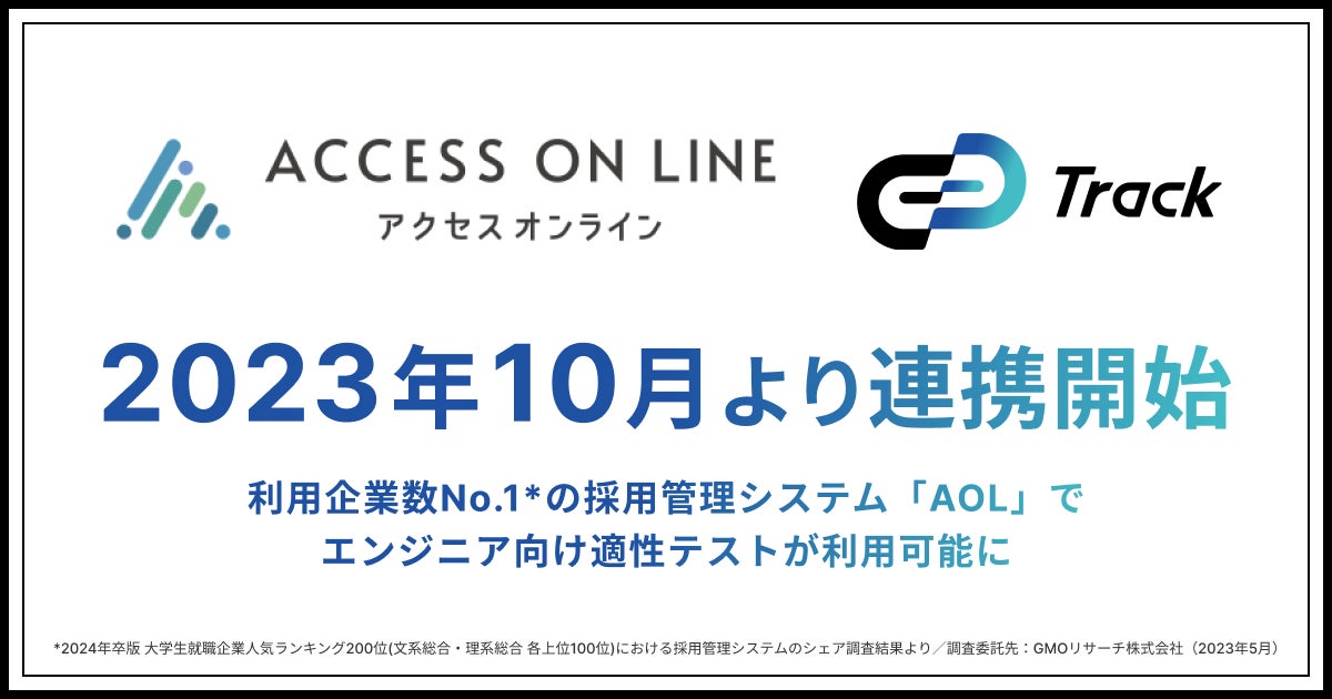 コーディングテスト「Track Test」、マイナビ社が提供する利用企業数No.1(*1)の採用管理システム「ACCESS ON LINE」と2023年10月より連携開始。