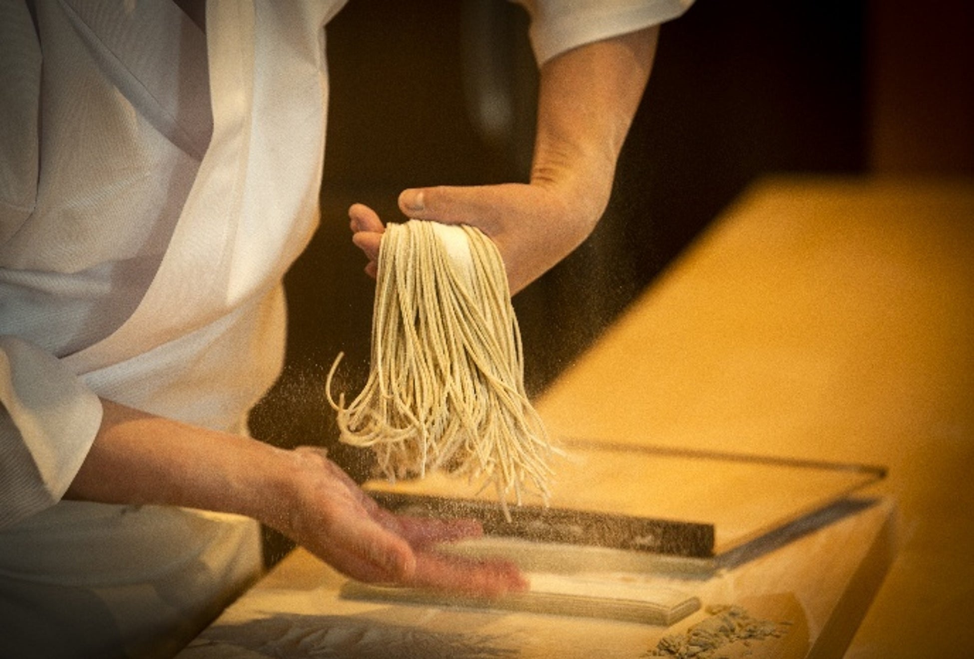 「その土地の食を起点に地域や人の暮らしを豊かにする」ことを掲げる㈱フォンスは、江戸時代から受け継がれてきた蕎麦と酒を愉しむ文化を、現代の様式に合わせて表現します。毎日手打ちされる二八蕎麦と地域で育まれた素材を使用した料理を体感できます。