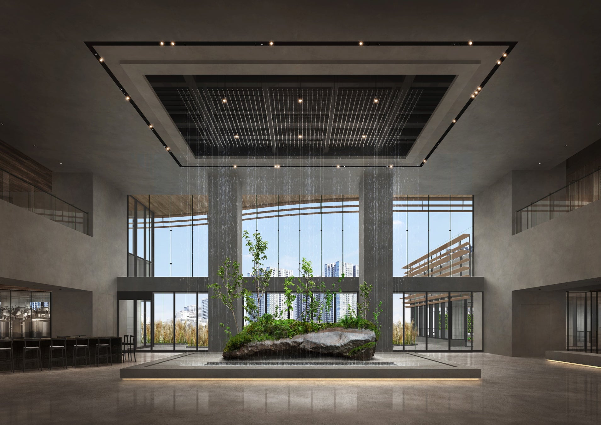 植物のしつらえはTSUBAKIが手掛けます。施設の中央に位置するアトリウムには直径5mの岩が運び込まれ、そこに新たな命が芽生え育つ自然の営みと力強さを表現した作品を設けます。まるで雨が降るかのような演出と共に植物は育ち、時と共に変化していきます。また、テラスエリアには日本の里山の景色を映し出すススキ野原が現れます。吹き抜ける風に揺れ、秋には黄金色に輝き、移り変わる季節を感じられます。