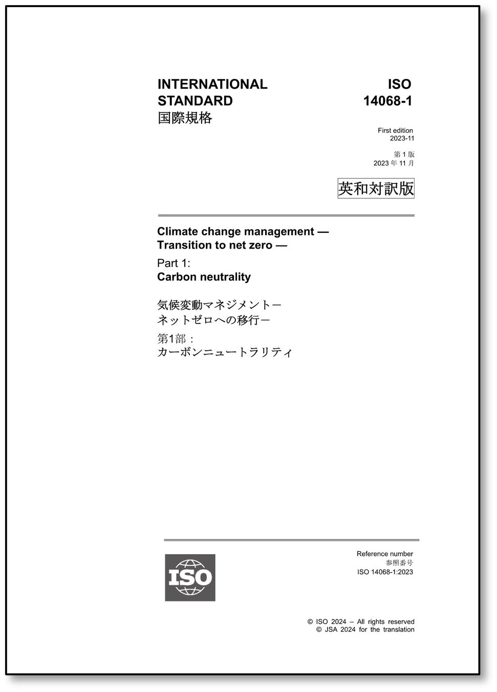 【新刊邦訳規格の発行!】ISO 14068-1:2023「気候変動マネジメント-ネットゼロへの移行-第1部:カーボンニュートラリティ」他4点の英・日対訳版を発行しました
