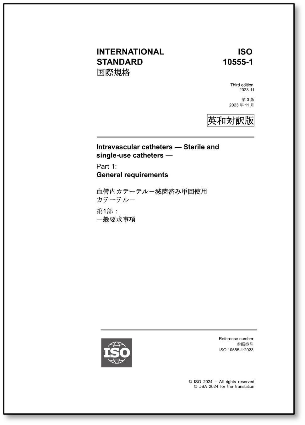 ● ISO 10555-1:2023「血管内カテーテル-滅菌済み単回使用カテーテル-第1部:一般要求事項」