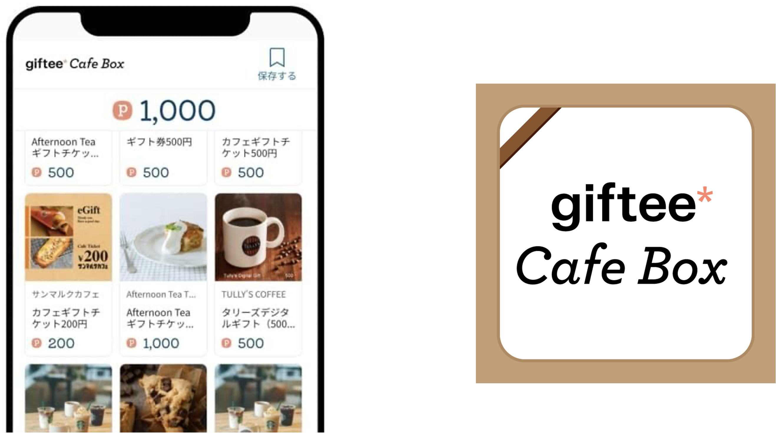 券種:「giftee Cafe Box」 500/1,000/1,500/2,000/3,000ポイント