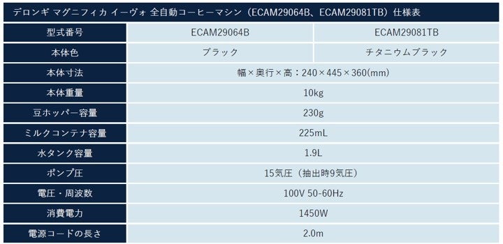 ECAM29081TB:https://barista.delonghi.co.jp/products/ecam29081tb.html