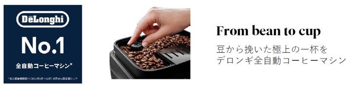 デロンギではご自宅でも簡単に本格コーヒーが楽しめるように、豆から挽いた一杯とともに“完璧(イタリア語で“Perfetto”)な時間”をお楽しみいただきたいという思いを込め、「Perfetto, from bean to cup. 〜豆から挽いた極上の一杯を〜」をスローガンにエスプレッソ・カプチーノメーカーをグローバルで展開しています。ご自宅で挽きたて淹れたての本格的な一杯をご堪能いただける本製品で、おうち時間でもワンランク上のコーヒーライフをどうぞお楽しみください。