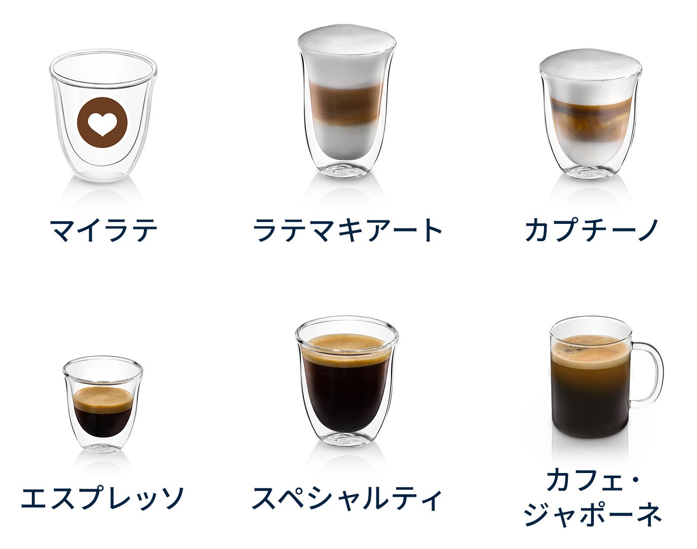 コーヒーメニュー: エスプレッソ、スペシャルティ(※)、カフェ・ジャポーネ