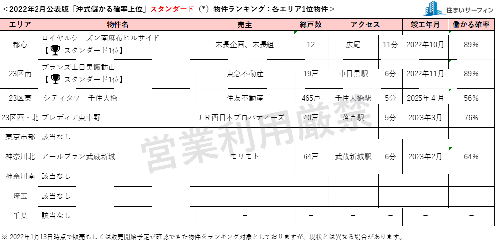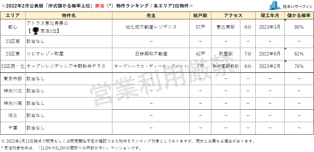 2月公表分は、2022年1月13日時点で販売もしくは販売予定が確認できた物件を対象としています。