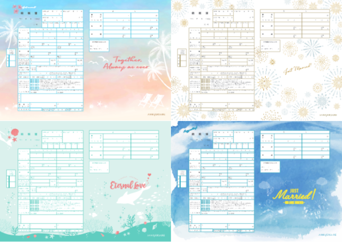 - アニヴェルセルオリジナル婚姻届新デザイン4 種
