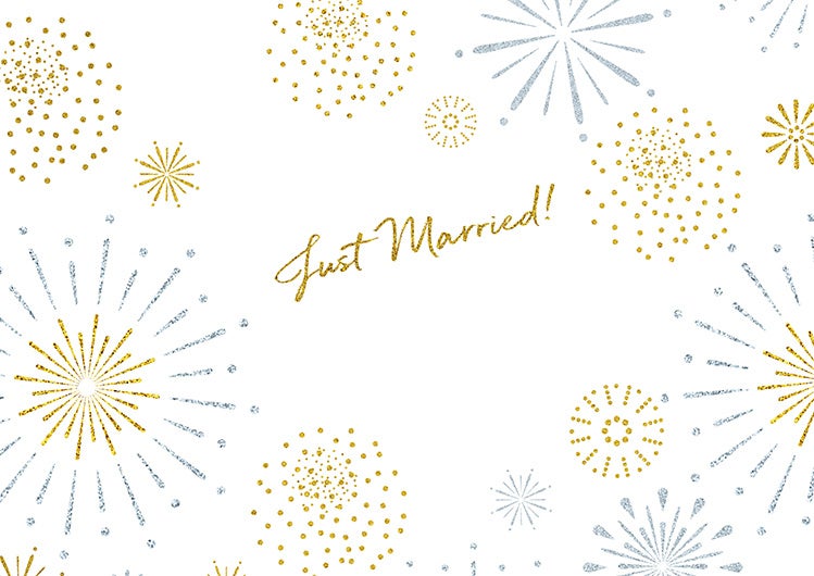 夜空に打ち上げられた花火がおふたりの結婚をキラキラと祝福するデザインです。ゴールドとシルバー2 色の