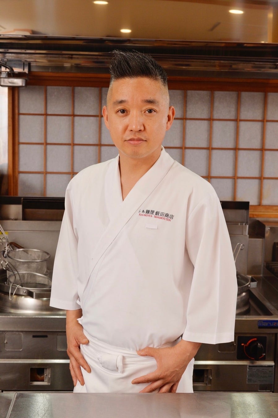 1977年神奈川県生まれ。料理好きが高じ、大学卒業後は東京の日本料理店で修行。25歳で地元に戻り、叔父のラーメン店を継ぐ。その後ラーメン作りに没頭し、2010年現在の「飯田商店」を開店。追求し続けた一杯は全国のファンを魅了し、「TRYラーメン大賞」で4連覇の殿堂入りを果たす。