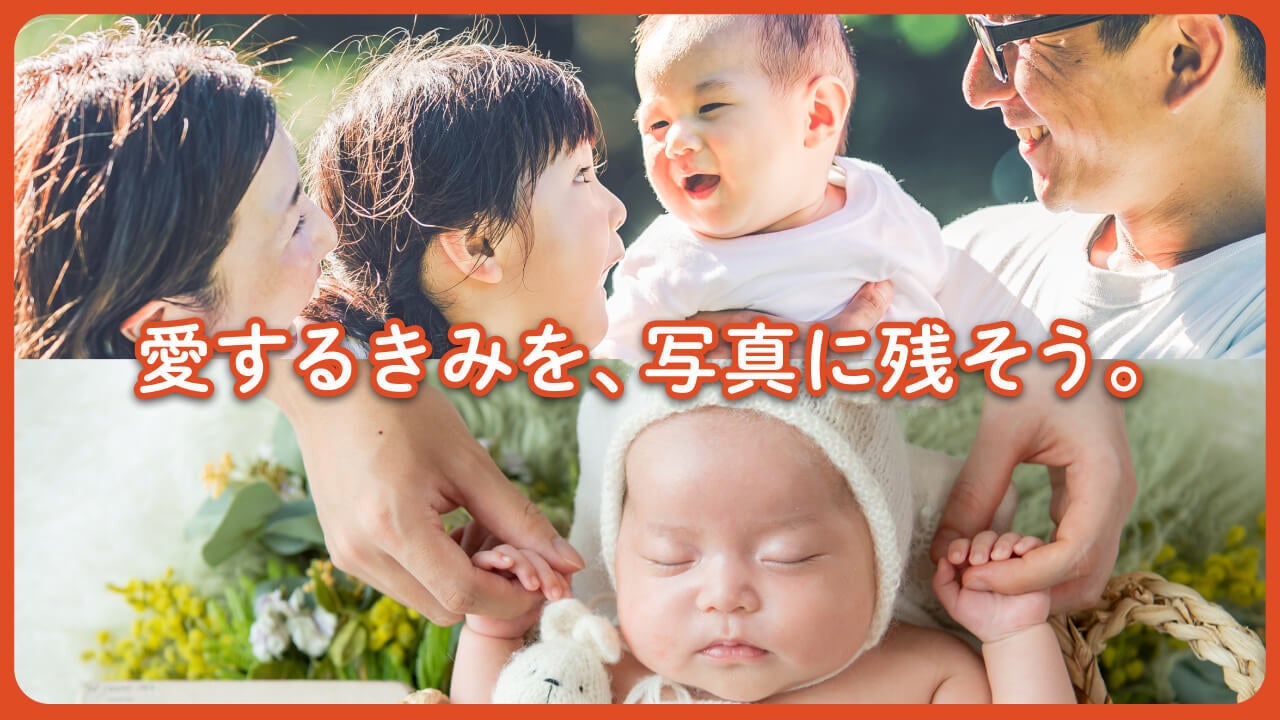 マタニティ、ニューボーン(新生児)、お宮参り、誕生日、七五三、卒入園・卒入学、成人式、結婚式の前撮り・後撮り、長寿祝いなど、ご家族の記念日はもちろん、日々の残したい愛おしさに寄り添う「わが家の専属カメラマン」として、全国のご家族にご利用いただいています。