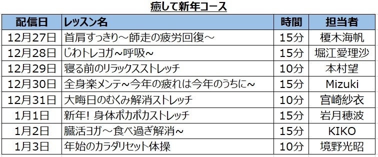 「癒して新年/燃やして新年」 2コースのレッスン動画を無料配信! さらに、レッスンを視聴して応募すると、抽選で100名様に「お年玉」をプレゼント!!